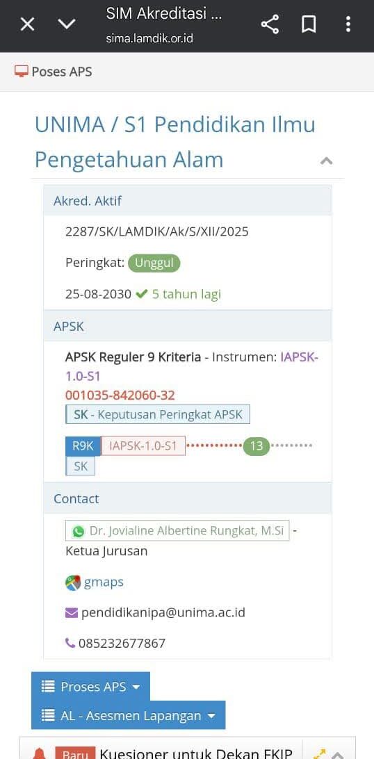 Status akreditasi tersebut sekaligus menegaskan bahwa Prodi S-1 Pendidikan IPA telah memenuhi standar mutu akademik, tata kelola, dan capaian kinerja yang sangat tinggi, baik dalam konteks nasional maupun persaingan kualitas pendidikan sains di tingkat global.
