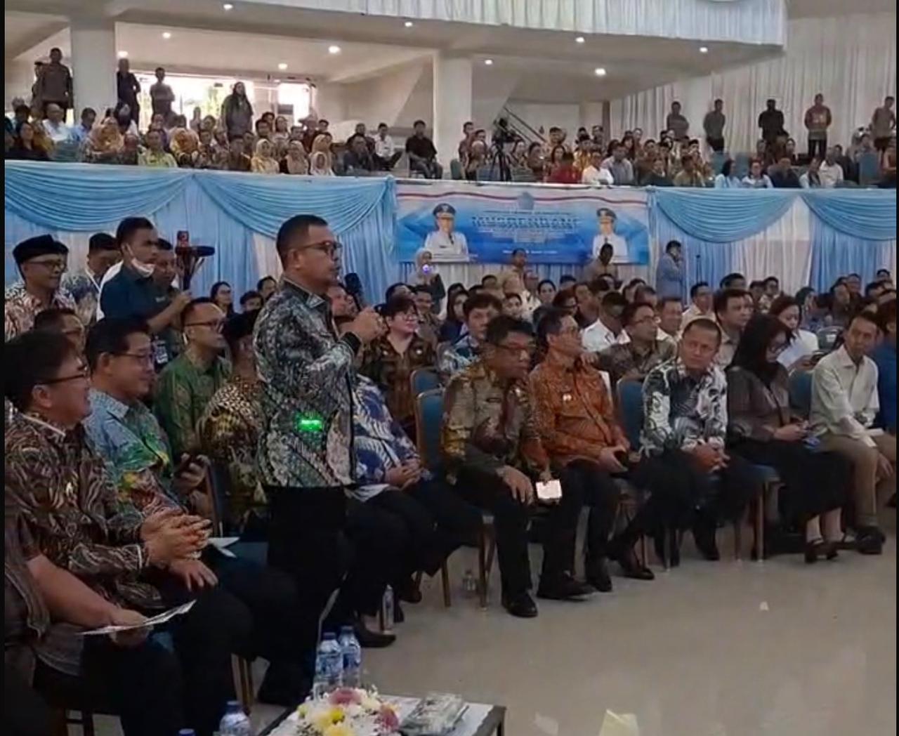Maruarar Sirait juga sempat menanyakan bagaiman perasaan Bupati Boltara, Sirajudin Lasena, apakah senang atau merasa tertekan? sambil bercanda gurau dan diikuti tawa para undangan.