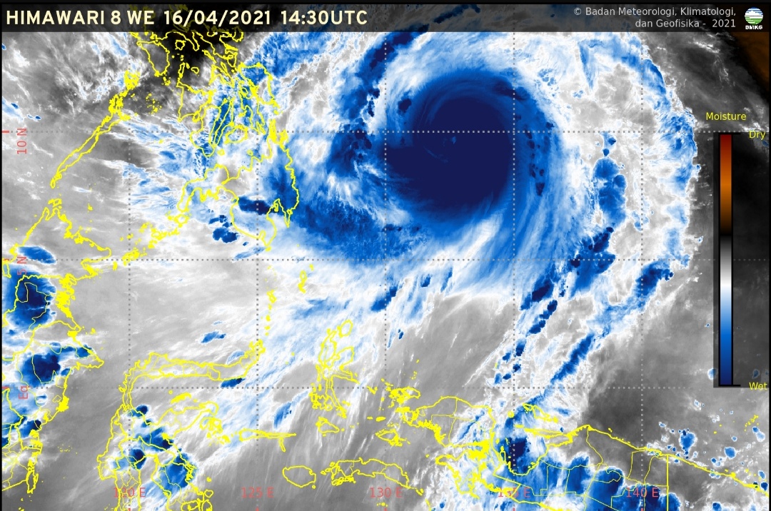 | Situasi Badai Tropis ‘SURIGAE’ yang terekam melalui foto satelit milik BMKG Maritim Bitung. (Ist) |