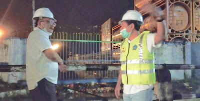 Terpantau oleh sejumlah awak media, Kepala Dinas PUPR Pemkot Bitung, Rudy Theno didampingi oleh kedua staf teknis Tim Helem Merah meninjau lokasi genangan air/Banjir diwilayah Pusat Kota Bitung dan depan pintu masuk Pelabuhan Samudera Bitung. Jumat (07/05).