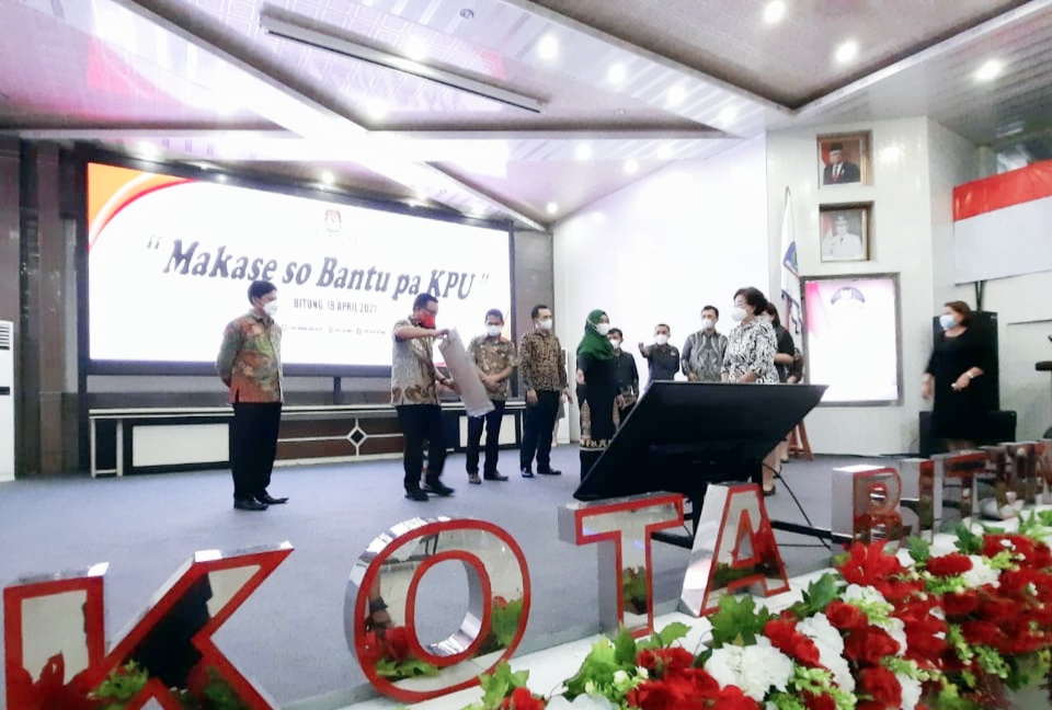 BITUNG (Gawai.co) – Bertajuk ‘Makase So Bantu Pa KPU’ Komisi Pemilihan Umum (KPU) Kota Bitung bersama Pemerintah Kota (Pemkot) mengelar kegiatan Ucapan Terima Kasih dan pemberian piagam penghargaan bagi sejumlah lembaga pemerintah maupun non pemerintah serta media partner.
