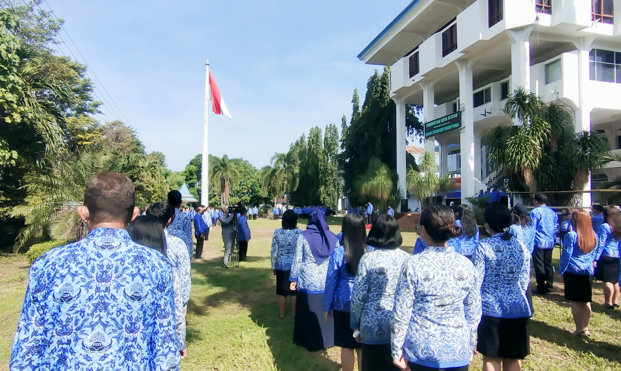 Maurits Mantiri saat memimpin Apel Korpri dihalaman kantor Walikota Bitung. (Doc Foto: Gawai.co)