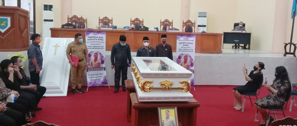 BOLMONG,(Gawai.co)– Dewan Perwakilan Rakyat Daerah (DPRD) Kabupaten Bolaang Mongondow (Bolmong), melepas jenazah lmarhum Marthen Tangkere. Hal itu sebagai bentuk penghargaan terakhir atas dedikasinya selama menjadi anggota DPRD Bolmong empat periode.